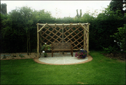 An example of an attractive arch way and seating area, built from scratch to the customer’s requirements. This features a semi circular paved area in front.