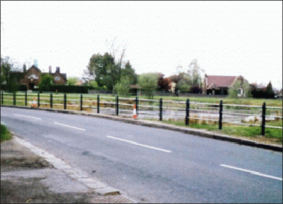 This project installed metal fencing along the road line as a barrier for the pond.