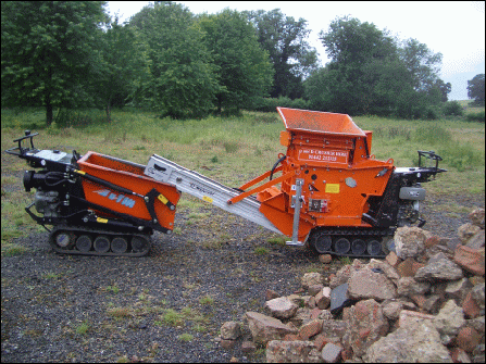 Able to handle up to 120mm diameter and fitted with a conveyor for discharge into trucks and barrows etc. This machine will fit through 830mm wide gaps for easy access to back gardens.